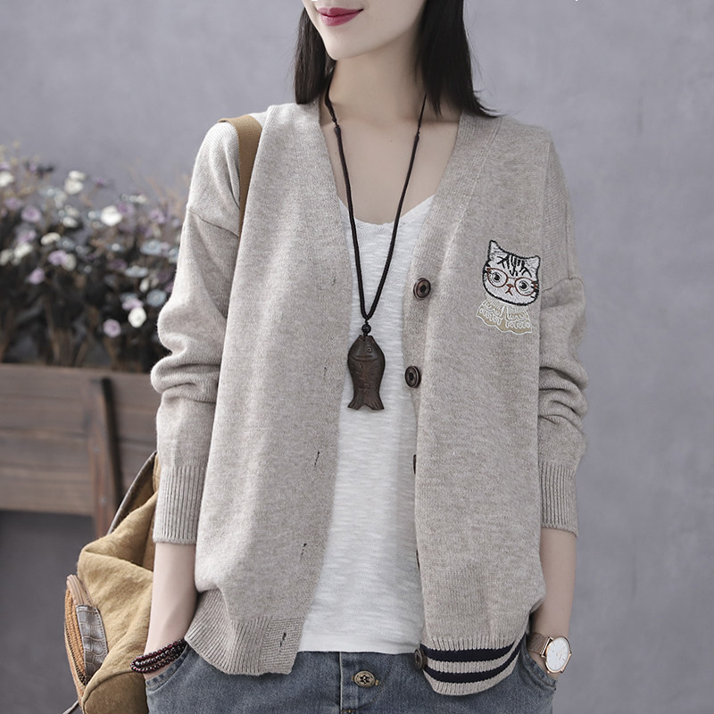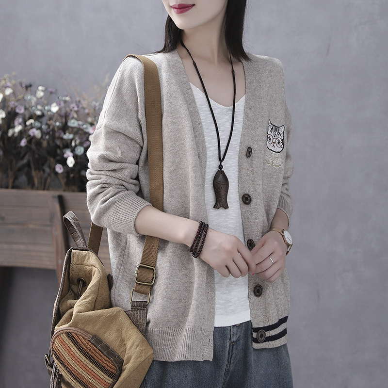 Han Suoyi literary and artistic spring and autumn women's cardigan sweater sweater sweater jacket women's long-sleeved large size loose casual outer wear