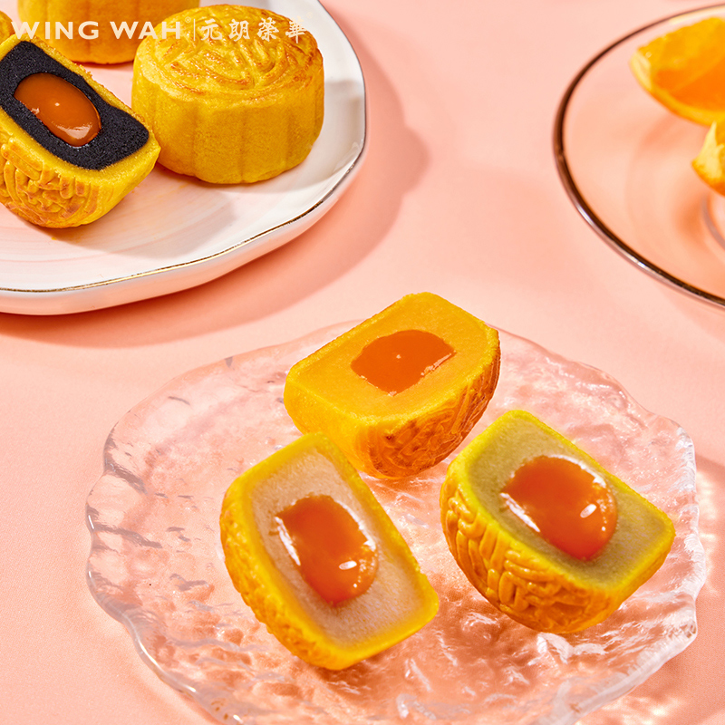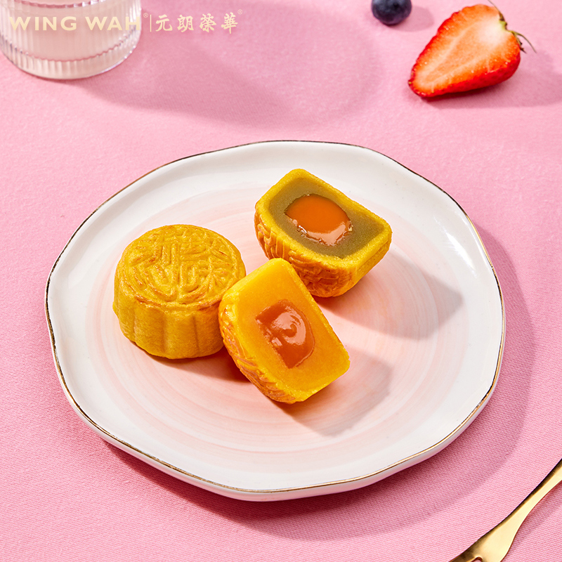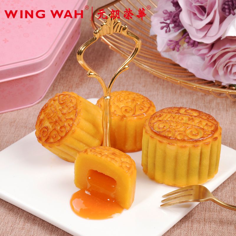 Yuen Long Rong Wah Stream Heart Milk Yellow Moon Cake Gift Box 315g Box 7 Pie 4 Taste Middle Autumn Casual snack cake Cakes Cakes