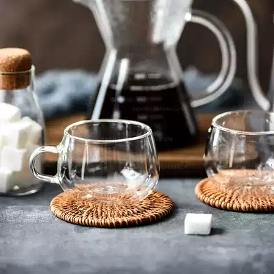 ins Net Red Cafe retro rattan coaster natural handmade coaster coffee cup heat insulation pad non-slip mat