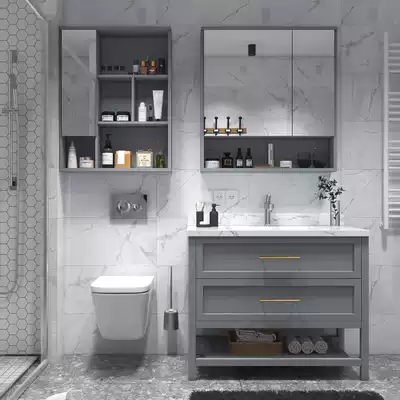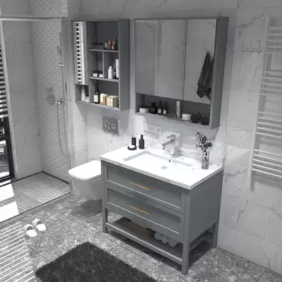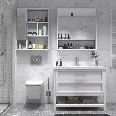 Modern simple light luxury bathroom cabinet combination Nordic washbasin washbasin cabinet solid wood powder room washbasin floor