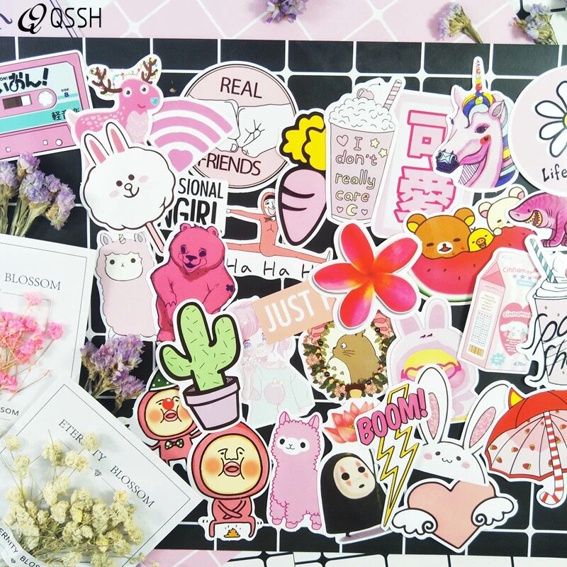 200 Pink Pink Teen Hearts Suitcase Stickers Cartoon Cute Suitcase Waterproof Personality Cell Phone Computer Stickup