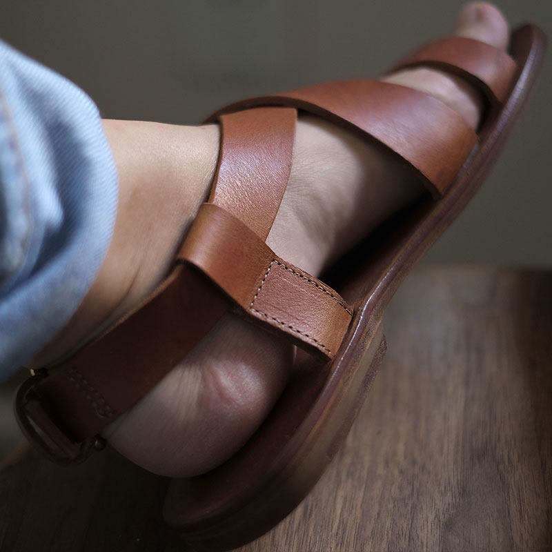 KONGLONGMOGU handmade retro vegetable tanned cowhide summer buckle new beach shoes all-match open toe sandals