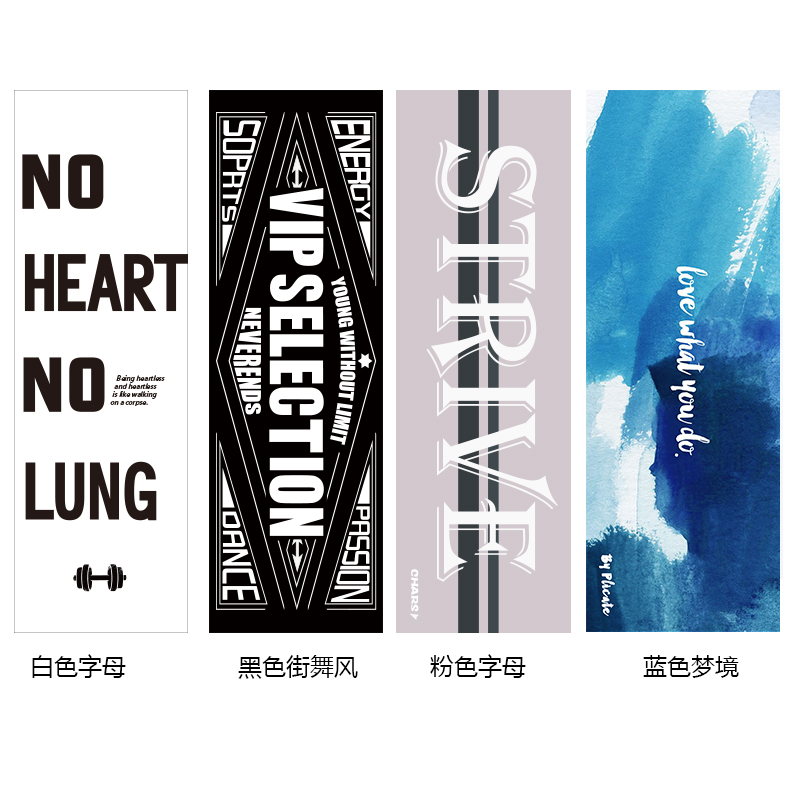 Simple letters (length increase 35*110cm) Black hip-hop (lengthened and increased 35*110cm) Blue Dreamland (lengthened and increased 35*110cm) Black and Yellow Devil (lengthened and enlarged 35*110cm) Blue dumbbells (lengthened and enlarged 35*110cm)