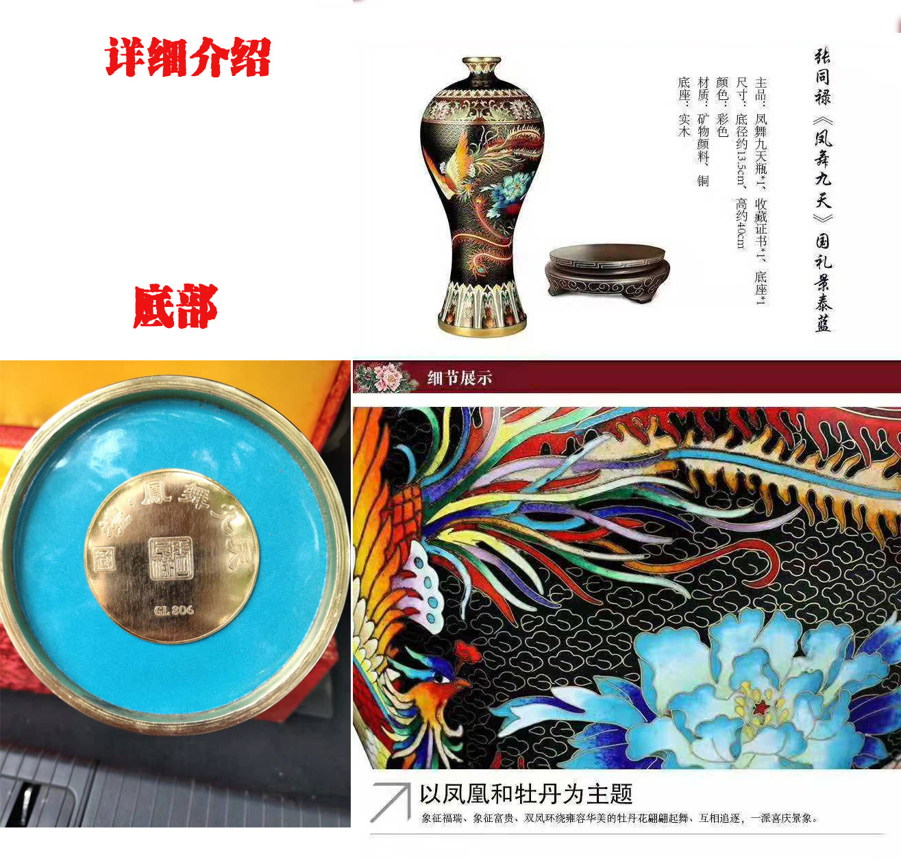 Nine days of national ceremony phoenix dance Beijing cloisonne Zhang Tonglu Xifeng bottle copper tire cloisonné enamel handicraft sent to foreigners