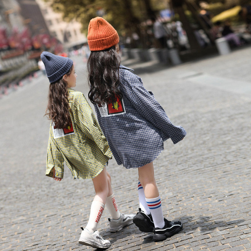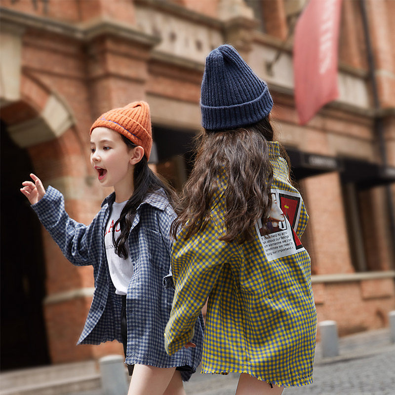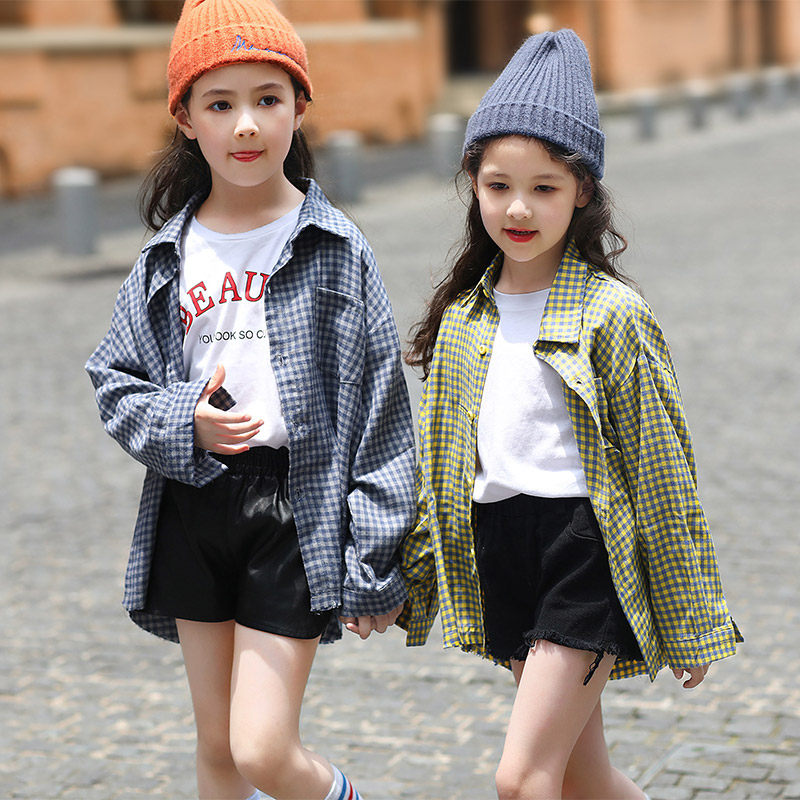 Girls ' shirts 2020 new middle and large children's suits long-sleeved thin Western-style plaid shirts Korean version of the fashionable jacket