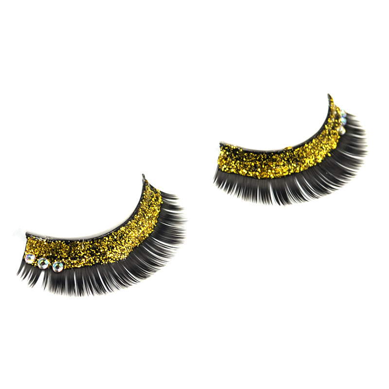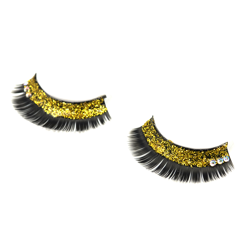 Golden Shiny Bright Diamond False Eyelashes Thick Sexy COS Latin Dance National Standard Cha Cha Stage Performance Film and Television Photo