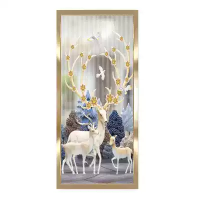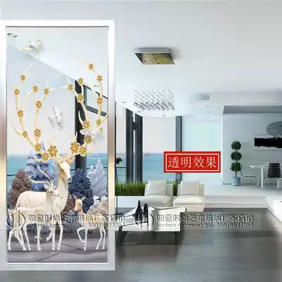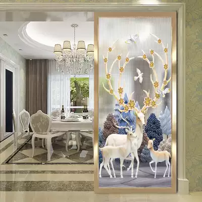 Light luxury style Modern art glass partition wall Living room shoe cabinet screen Nordic entrance dry and wet area double-sided background deer
