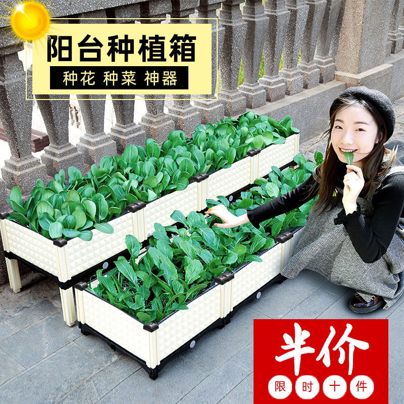 Vegetable artifact rectangular family flowerpot extra-large balcony planting box Non-foam plastic vegetable roof cucumber