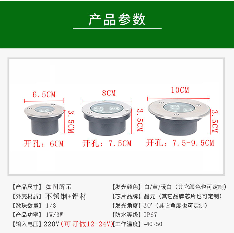 Buried lamp ultra-thin 1W3W smallest recessed outdoor waterproof floor spotlight Floor thinnest buried lamp