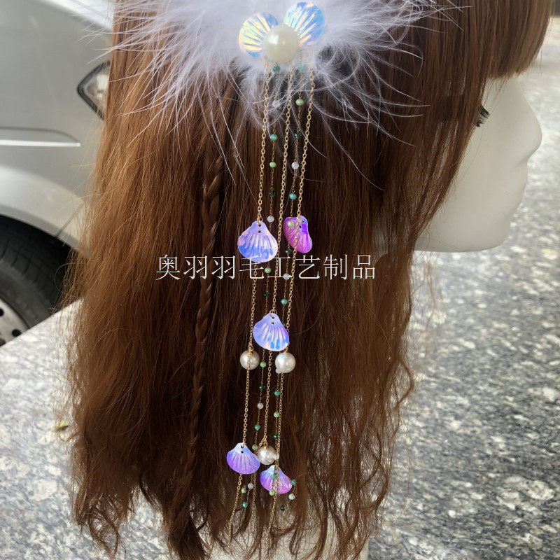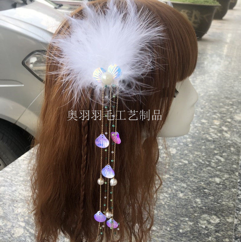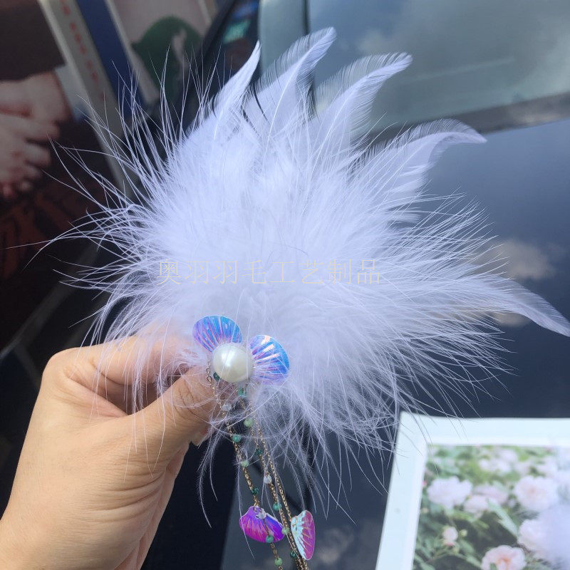 Ancient Wind Feather Headwear Crystal Pearl Feather Hair Clip Hanfu Accessories Long Stream Su Feather Hair Clip Chinese Wind