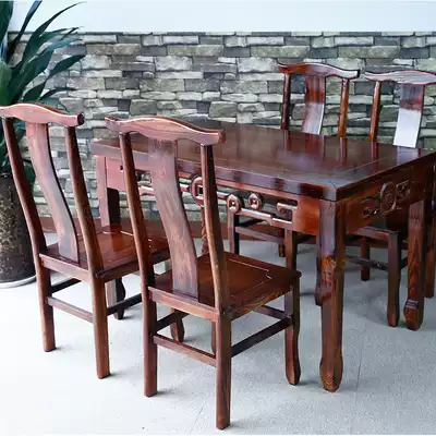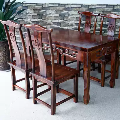 Retro rectangular table noodle restaurant solid wood restaurant antique solid wood dining table economical carbonized table and chair combination