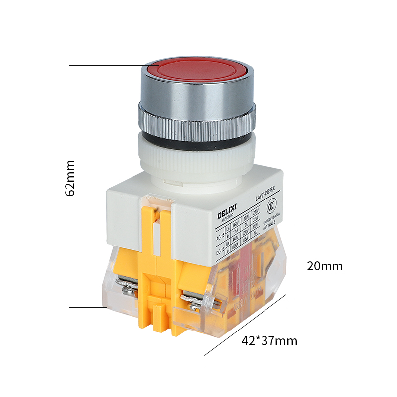 Delixi switch button LAY7-11BN LAY37 self-resetting red yellow green flat head 22MM self-locking