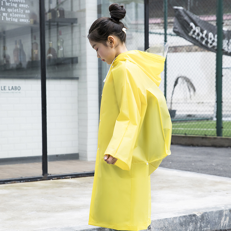 Children's raincoat girls boys' coat long big hat brim thick waterproof backpack bit elementary school junior high school student poncho