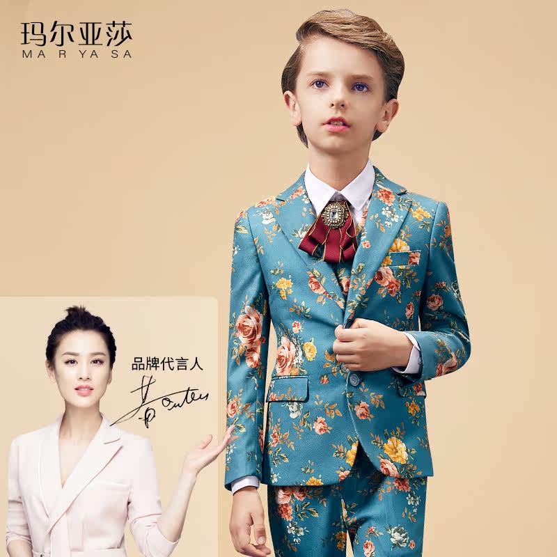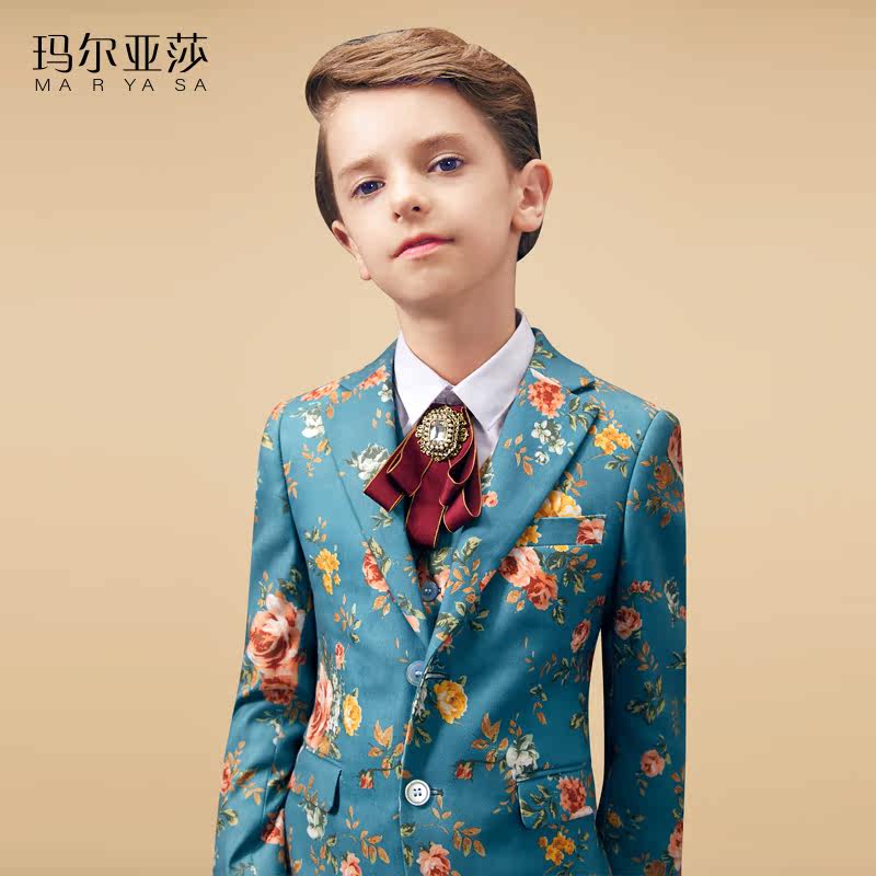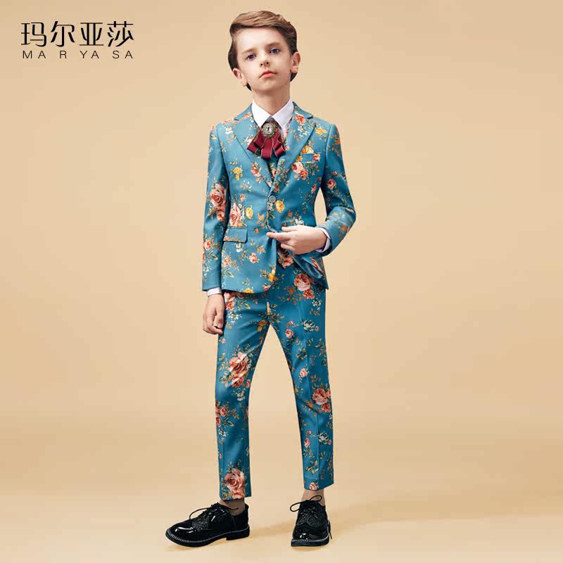 Maryasha boy gown suit for summer piano performance to host a small suit Inn Wind Shuai Flowers Children Walk Show