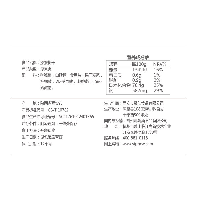Dried kiwifruit 108g + dried white peach 100g