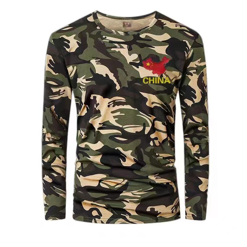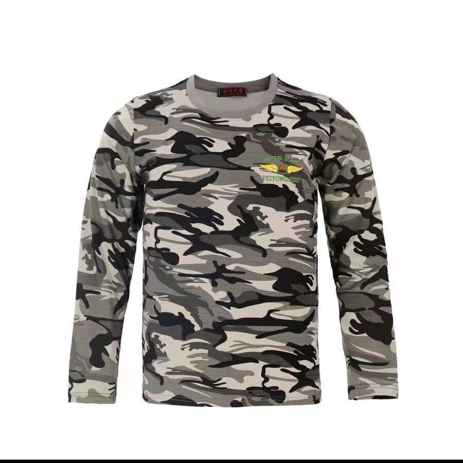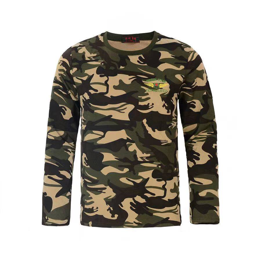 Spring and Autumn Men's Cotton Camouflage T-shirt embroidered long sleeved autumn camouflage sweatshirt student army training round-collar bottom