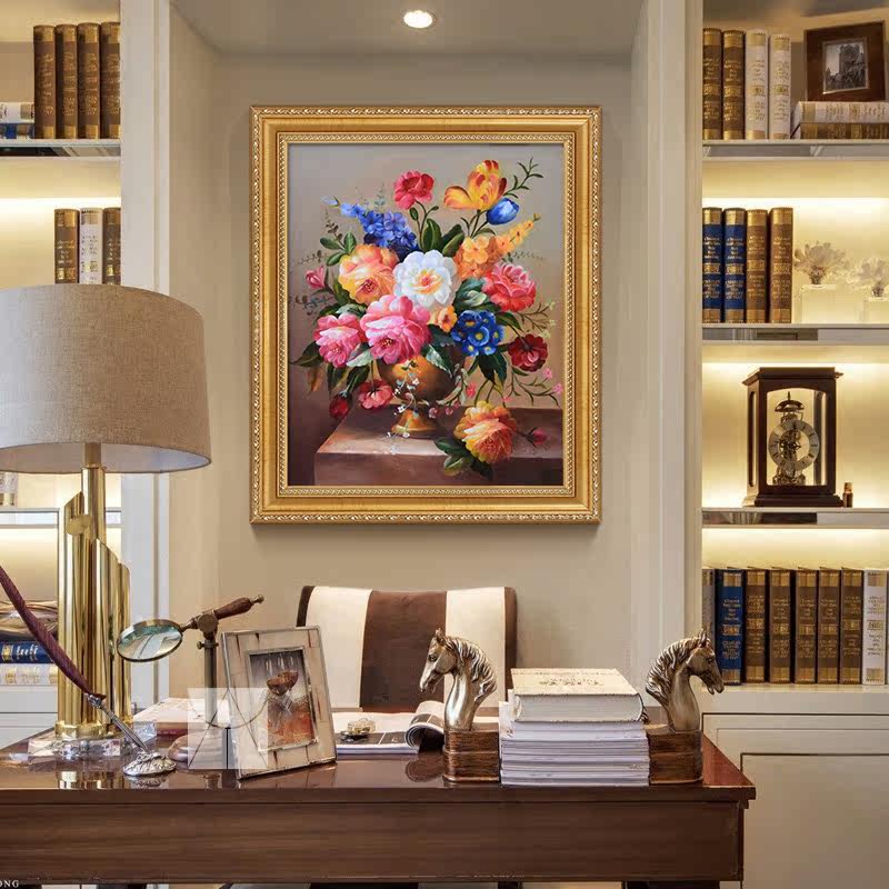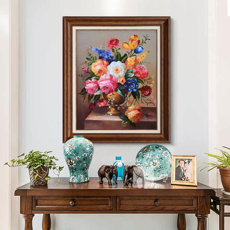 Art Master's European-style Xuanguan Artisanal Oil Painting Pure Hand Painting American Dining Hall Vintage Floral Decoration Painting Living Room Hanging Painting