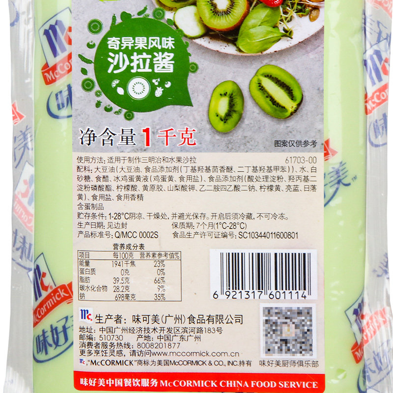 Kiwifruit flavoured salad dressing in a chic sauce.