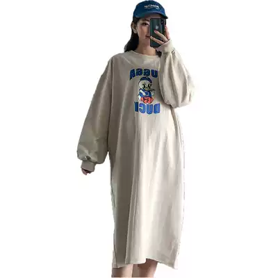 Autumn clothing large size pregnant women loose long version of pregnant women's clothes fashion knee dress pregnant mother long T-shirt 200kg