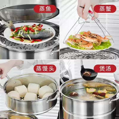 Steamer household full 304 stainless steel thickened 34 double-layer 3o4 two-layer 32cm large 40 steamed steamed bun pot cooking stew