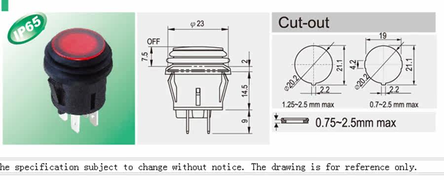 Taiwan waterproof switch R13-527DL button key switch drilling 20MM self-locking switch