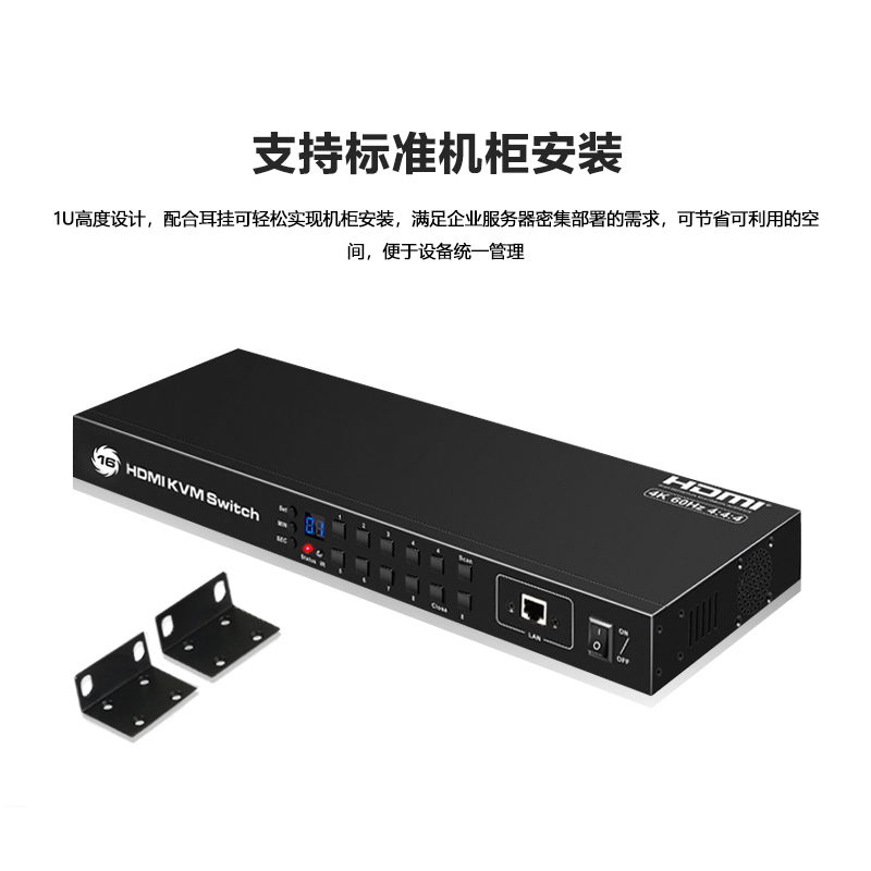 Industrial-grade KVM multi-channel automatic switcher 16 ports HDMI2 0 screen cutter 16 drag 1 with remote control 4K60hz