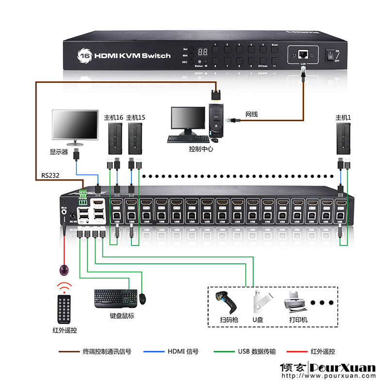 HDMI KVM 16 ports_4K60HZ_without wiring HDMI KVM 16 ports_4K60HZ_with 16 lines