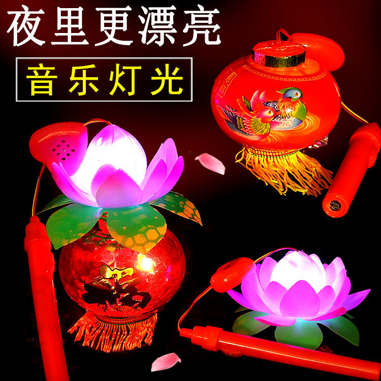 New Year lantern toys Children's gifts music colorful lotus stalls luminous net red portable luminous ancient style