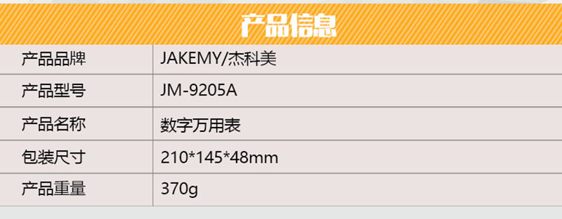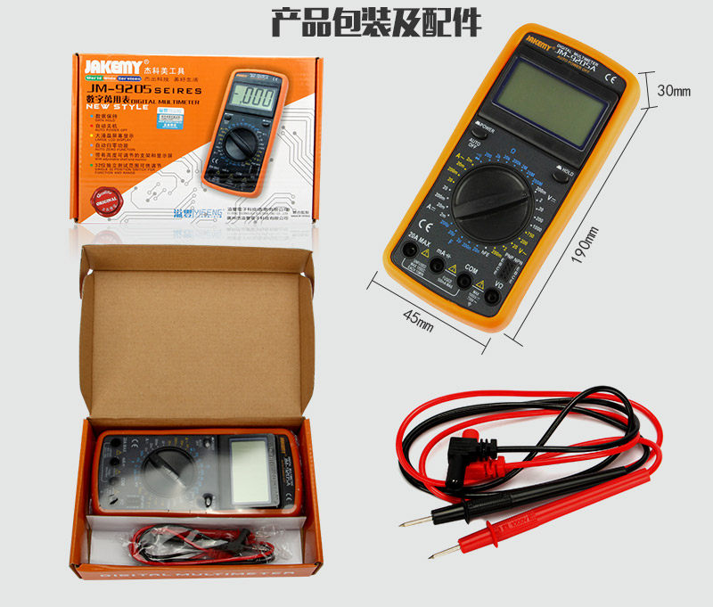 JAKEMY JM-9205A High-precision digital display household engineering digital multimeter with anti-fall and anti-slip rubber sleeve
