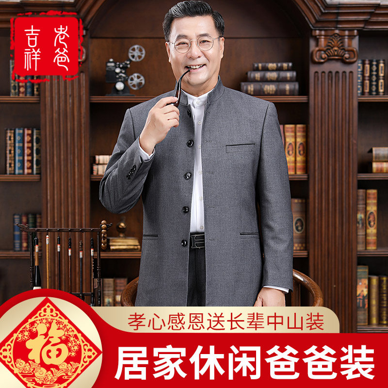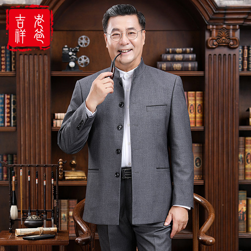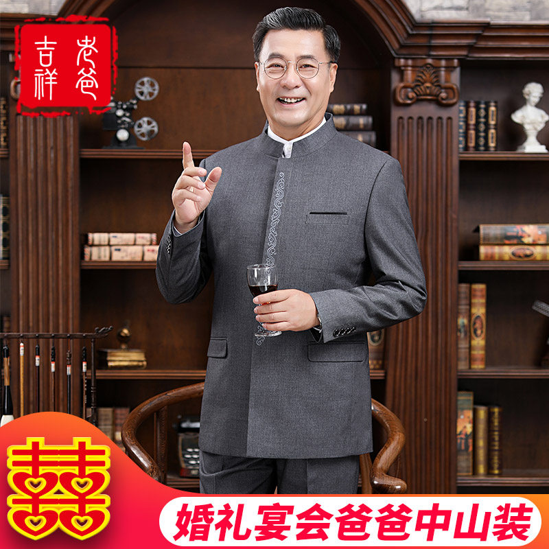 Wedding wedding dad outfit Chinese stand-up collar tunic suit Middle-aged men Middle-aged and elderly clothing Republic of China coat