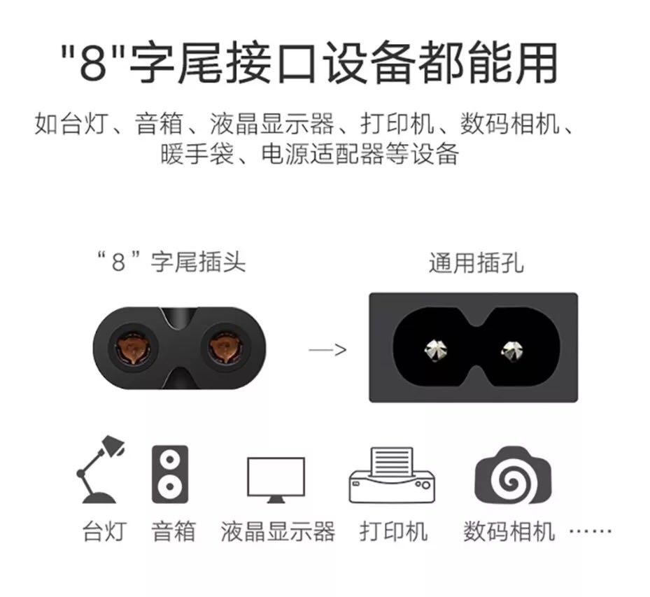Hisense Philips Sharp original LCD TV universal elbow two-hole 8-word line printer power cord