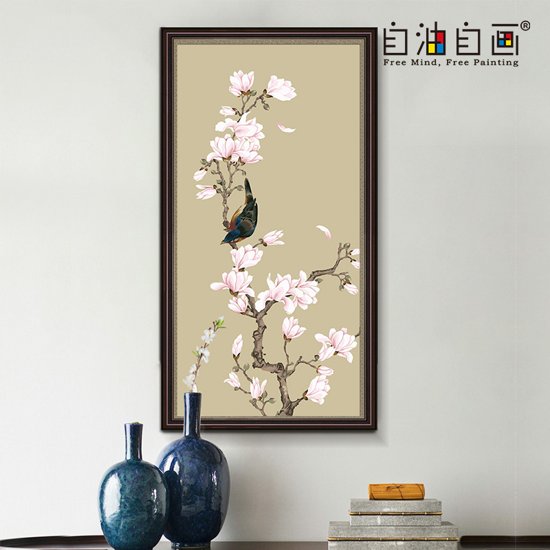 Self-Oil Self-painting Xuanguan into the household digital oil painting China's wind hand painted color painting drawing room oil color decoration magpie lovers