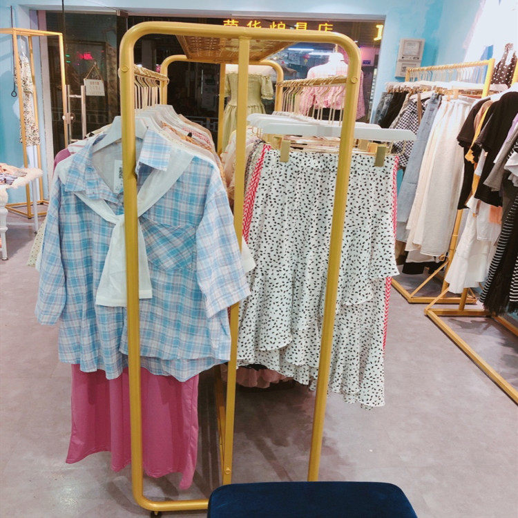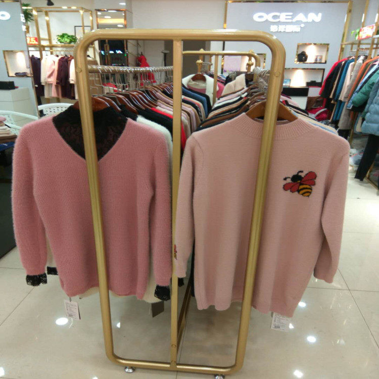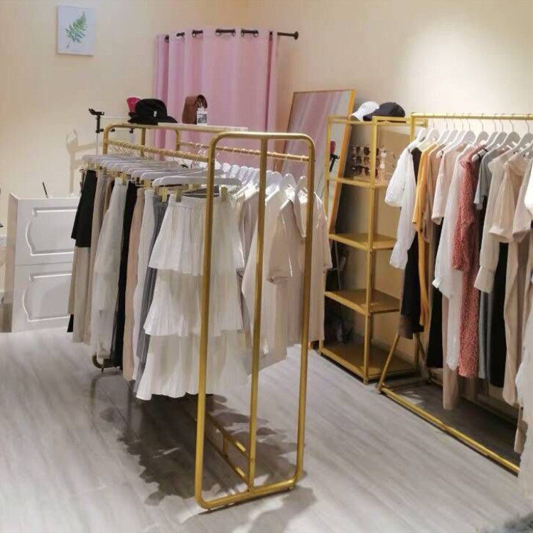 Clothing Store Show Rack Ground Style Double Row Middle Island Rack Upscale Gold Men's And Women's Clothing Middle Double Bar Hanging Hanger