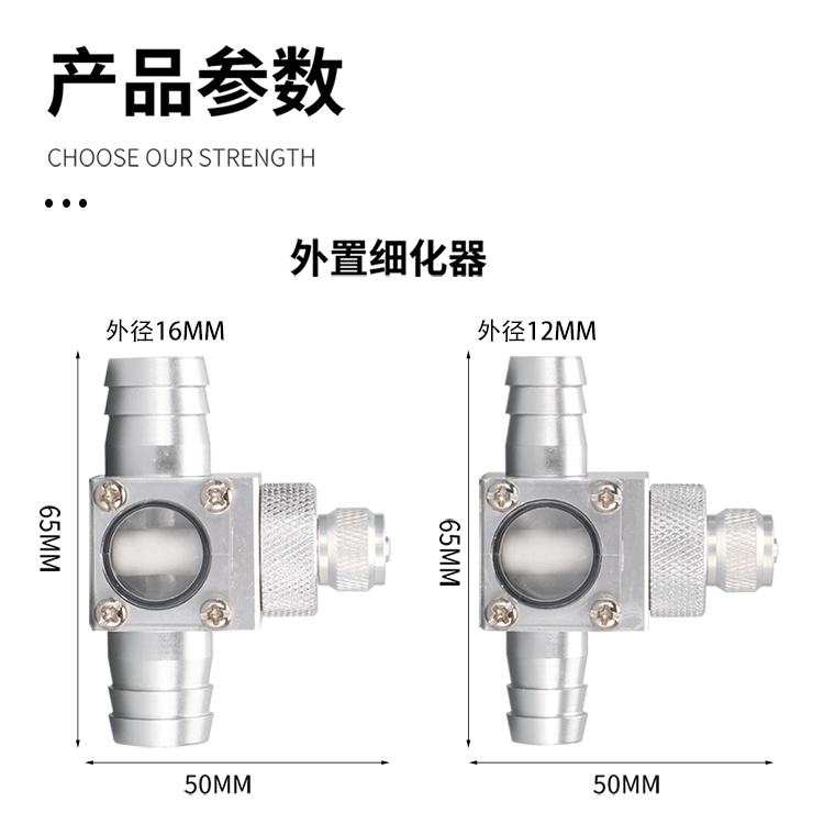 Spare atomizing head 1 Spare atomizing head 3 12 visual refiners(connected to the inner diameter 12mm water pipe) 16 Visual refiners(connected to the inner diameter 16mm water pipe) 12 visual universal