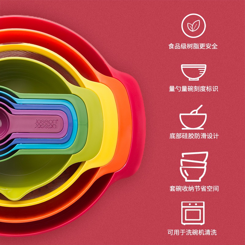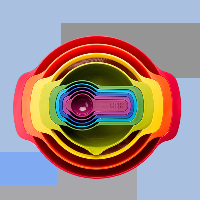 British Joseph Joseph Rainbow Pot Scoon 9 Piece Baking Bowl Kitchen Asphalt Wash Basket Ginger Yeon