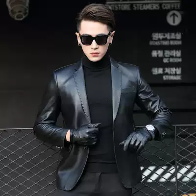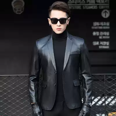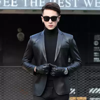 Haining leather suit men's slim sheepskin jacket jacket collar leather suit men's leather spring and autumn jacket trend