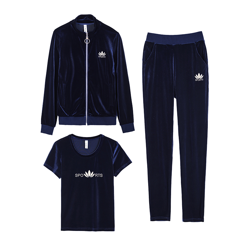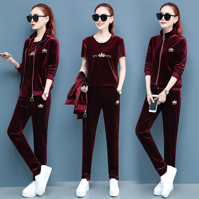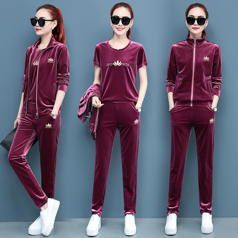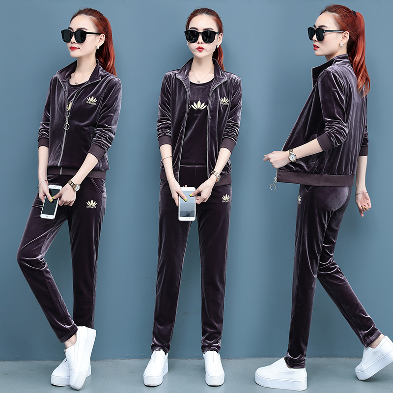 2020 new women's clothing autumn clothing fashion long sleeve casual sports gold velvet suit women's spring autumn season three sets