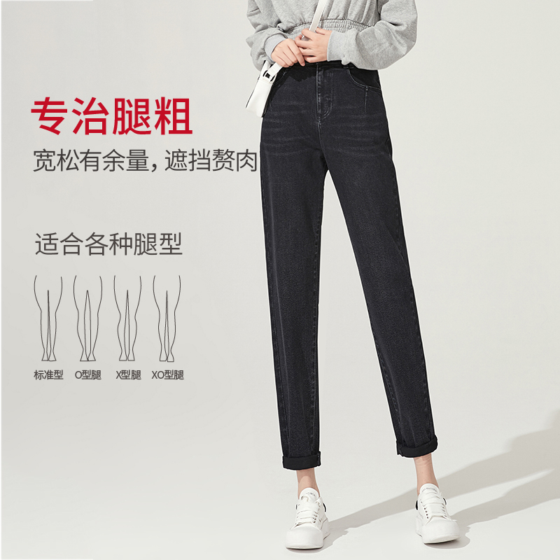 Yiyang black jeans women's straight loose 2021 autumn high waist Harun thin Dad pants women's summer 2754