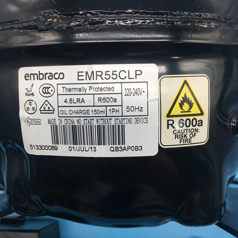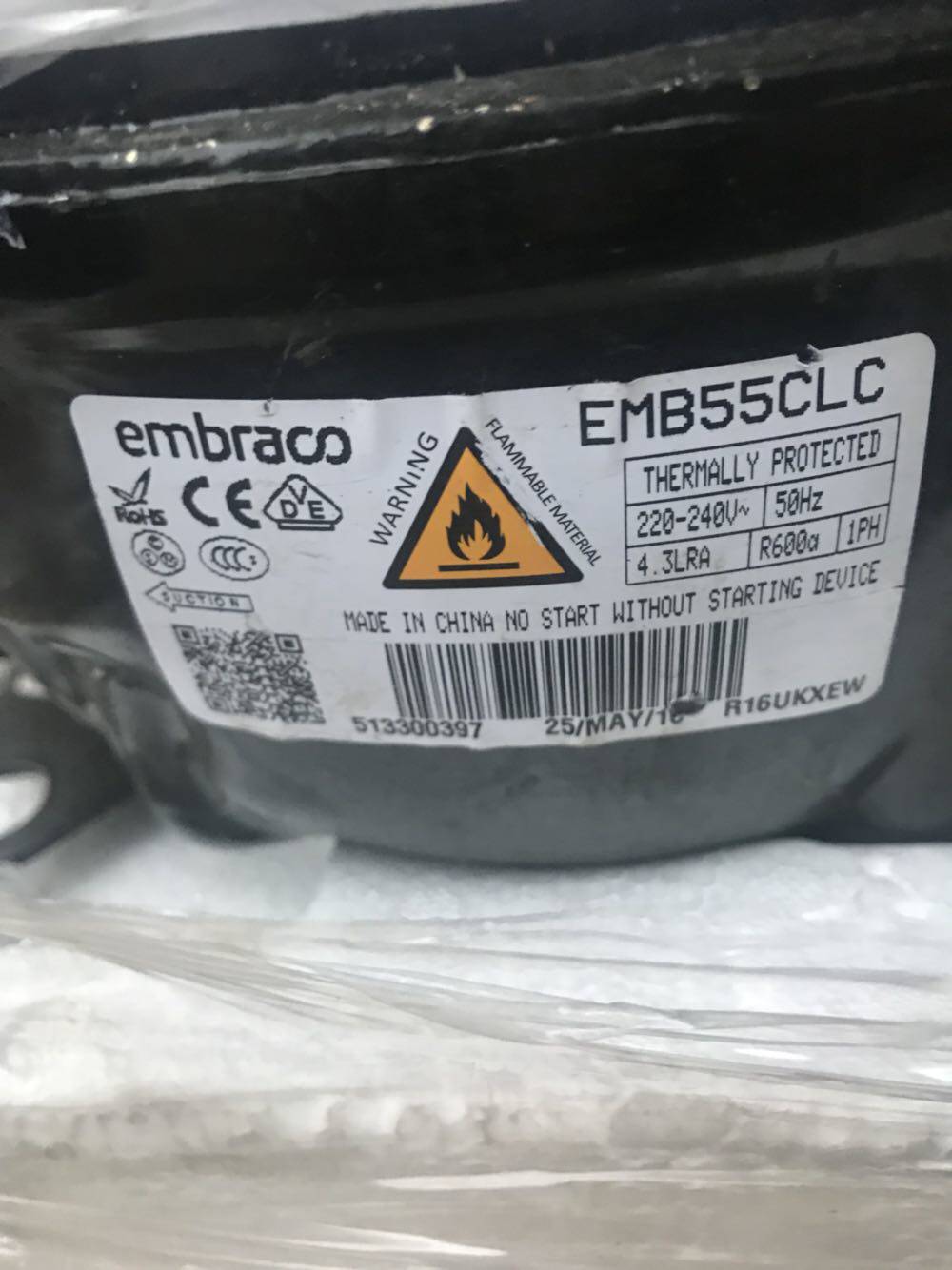 The new original Embraco compressor EMB55CLC R600A is guaranteed for one year