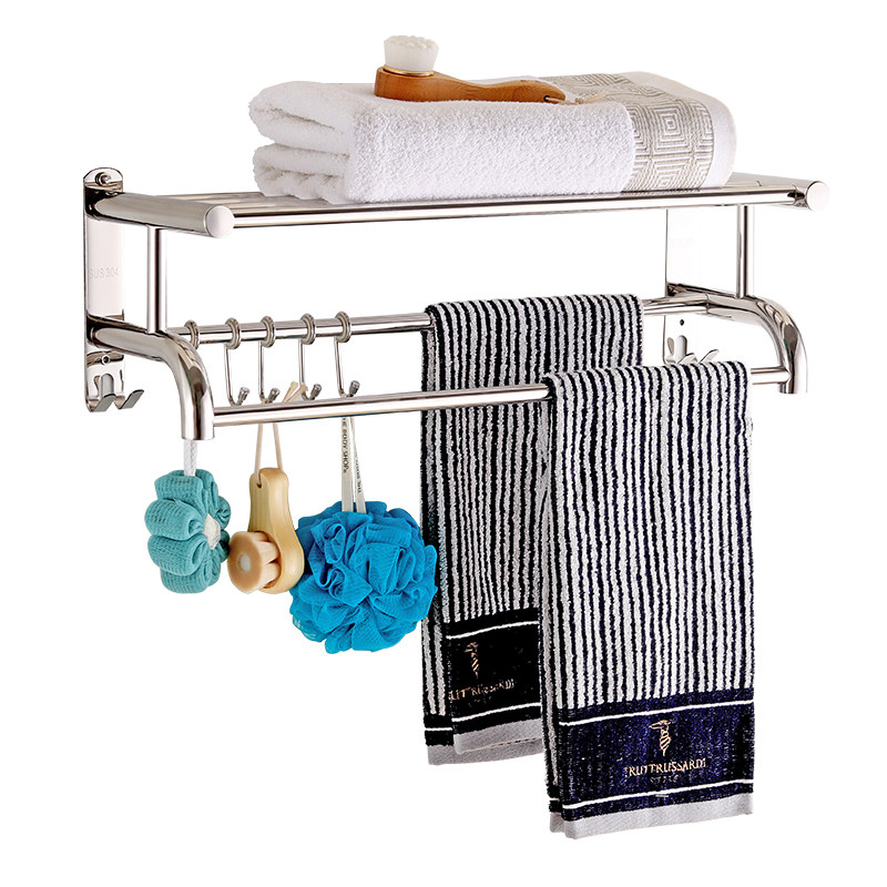 304 stainless steel towel rack bathroom rack free punching toilet storage towel rack towel bar wall hanging