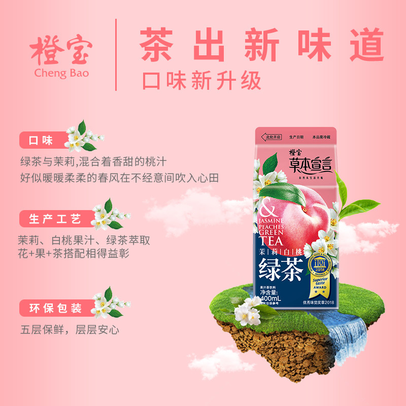 Orange Treasure herbal declaration Jasmine white peach green Tea Fruit tea drink 400ml*6 boxes 8 boxes of party drinks