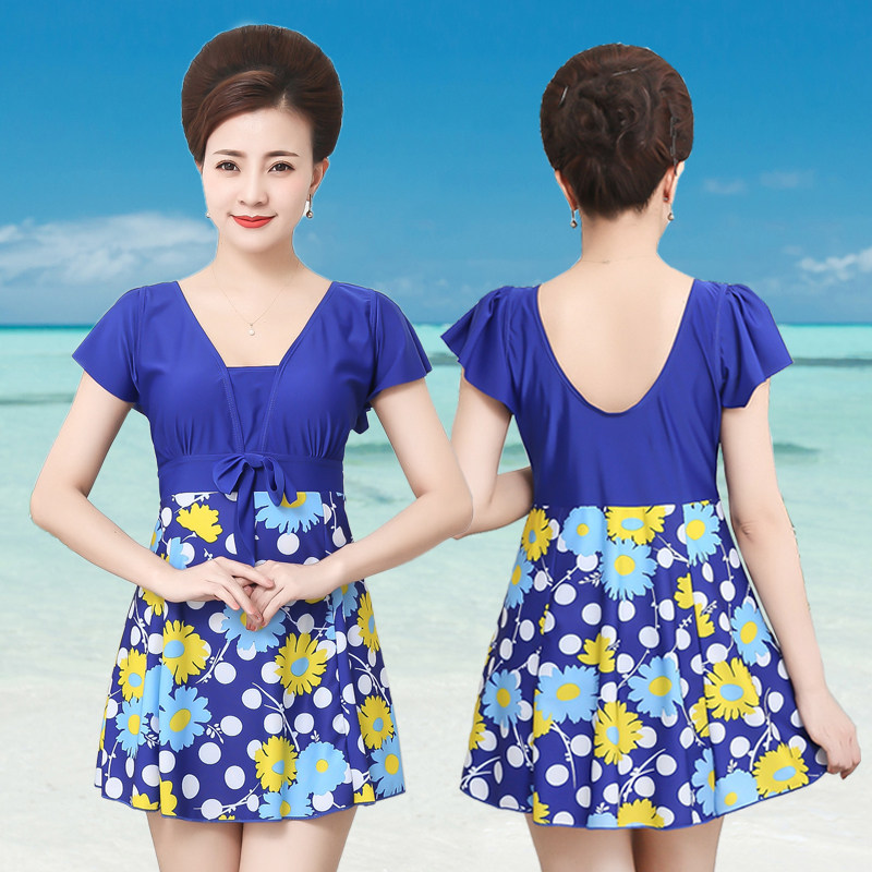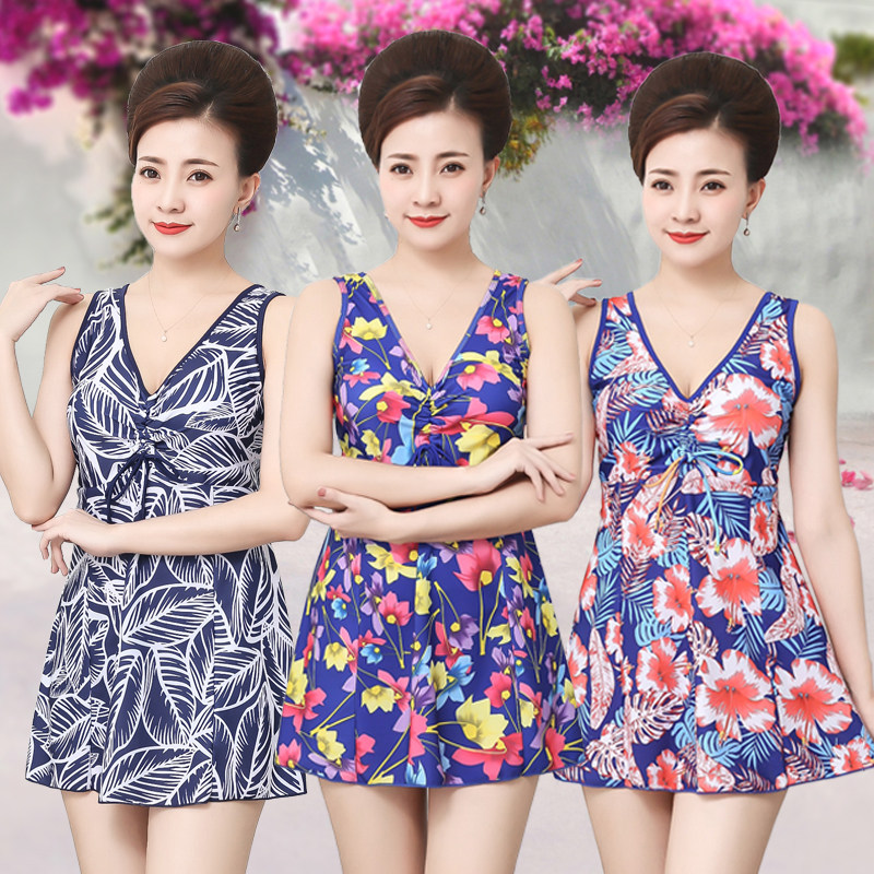 Swimsuit women's large size conservatively cover the belly to show thin and fat mm middle-aged and elderly mother one-piece hot spring swimsuit swimsuit
