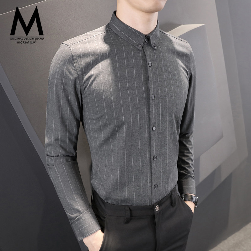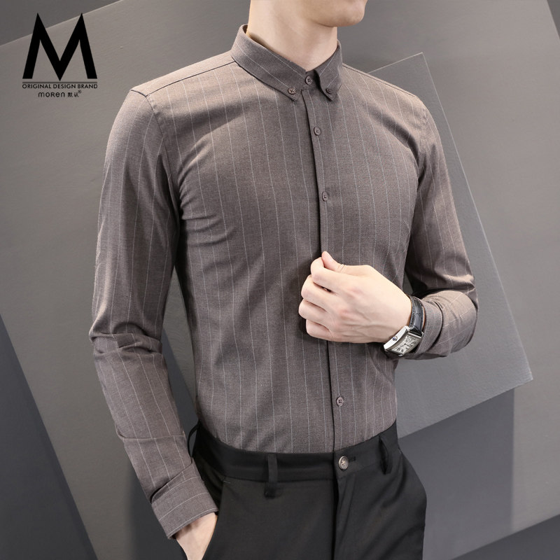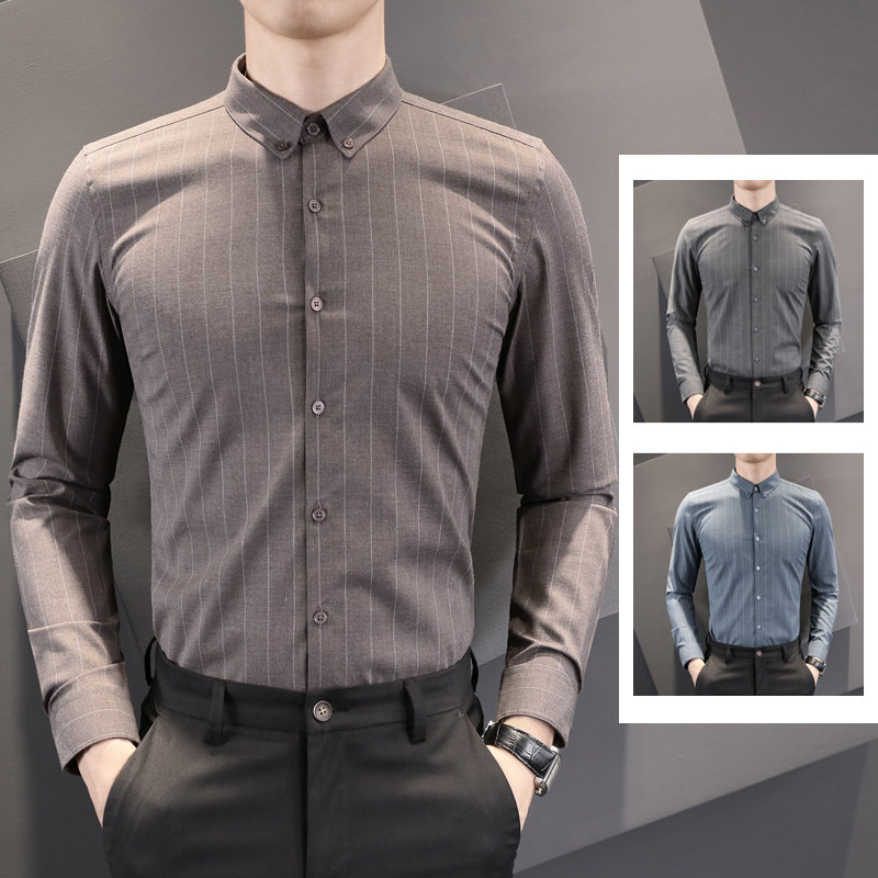 Default long-sleeved shirt men's Korean version of the trend handsome shirt men's striped slim-fit free ironing business casual inch shirt