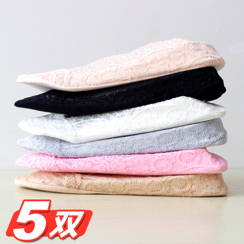 Ice silk low-top short socks lace boat socks invisible silicone non-slip non-falling with ladies summer thin set pure cotton shallow mouth