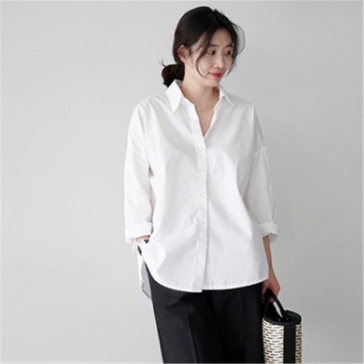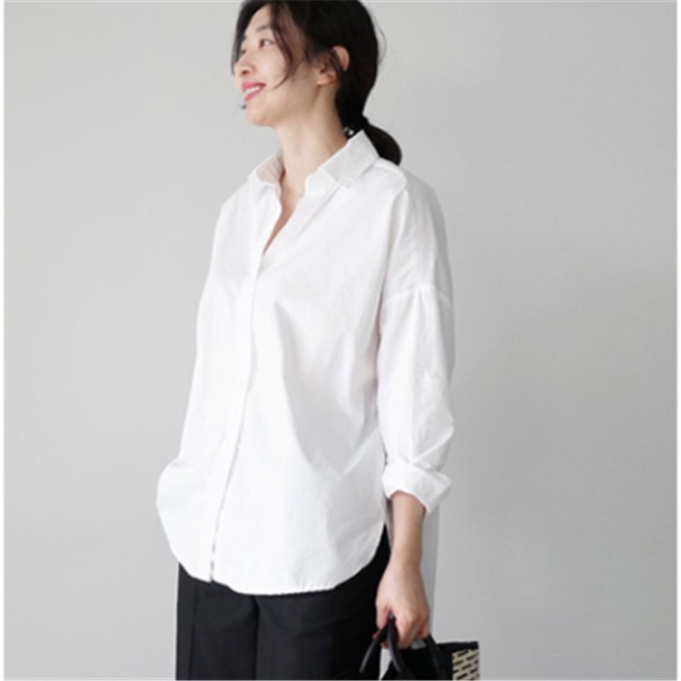 White long-sleeved shirt women's spring and autumn loose bottoming professional shirt Korean fan casual cotton large size shirt
