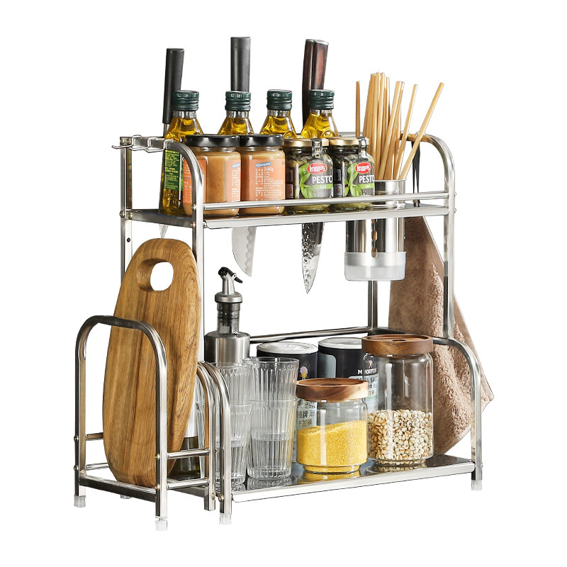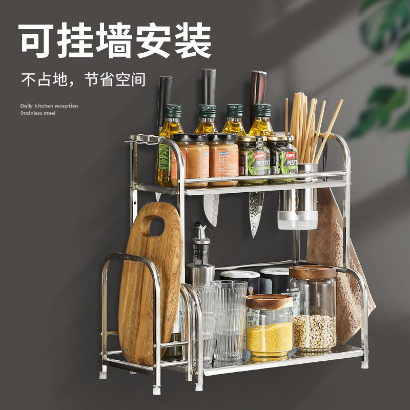 Stainless steel kitchen rack seasoning soy sauce bottle storage rack countertop floor-to-ceiling 2-layer 3-layer knife rack storage rack