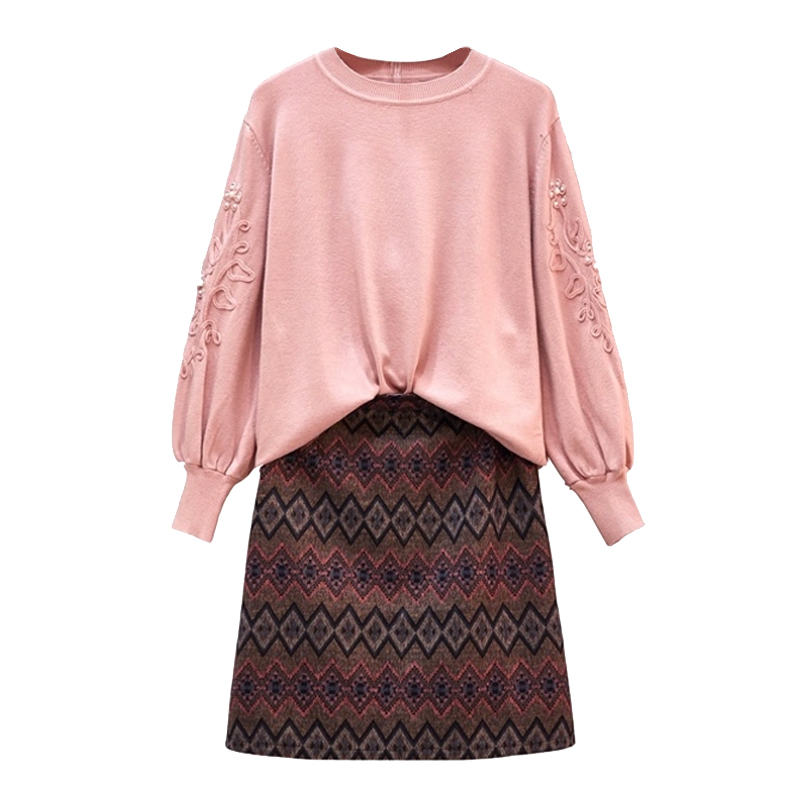 Grey sweater with a half body dress pink sweater and a half body dress.