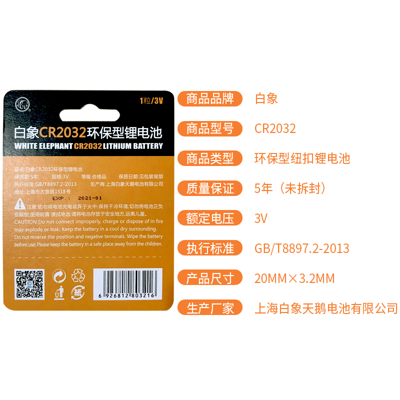 White elephant button battery CR2032 lithium battery 3v motherboard scale car key round button battery