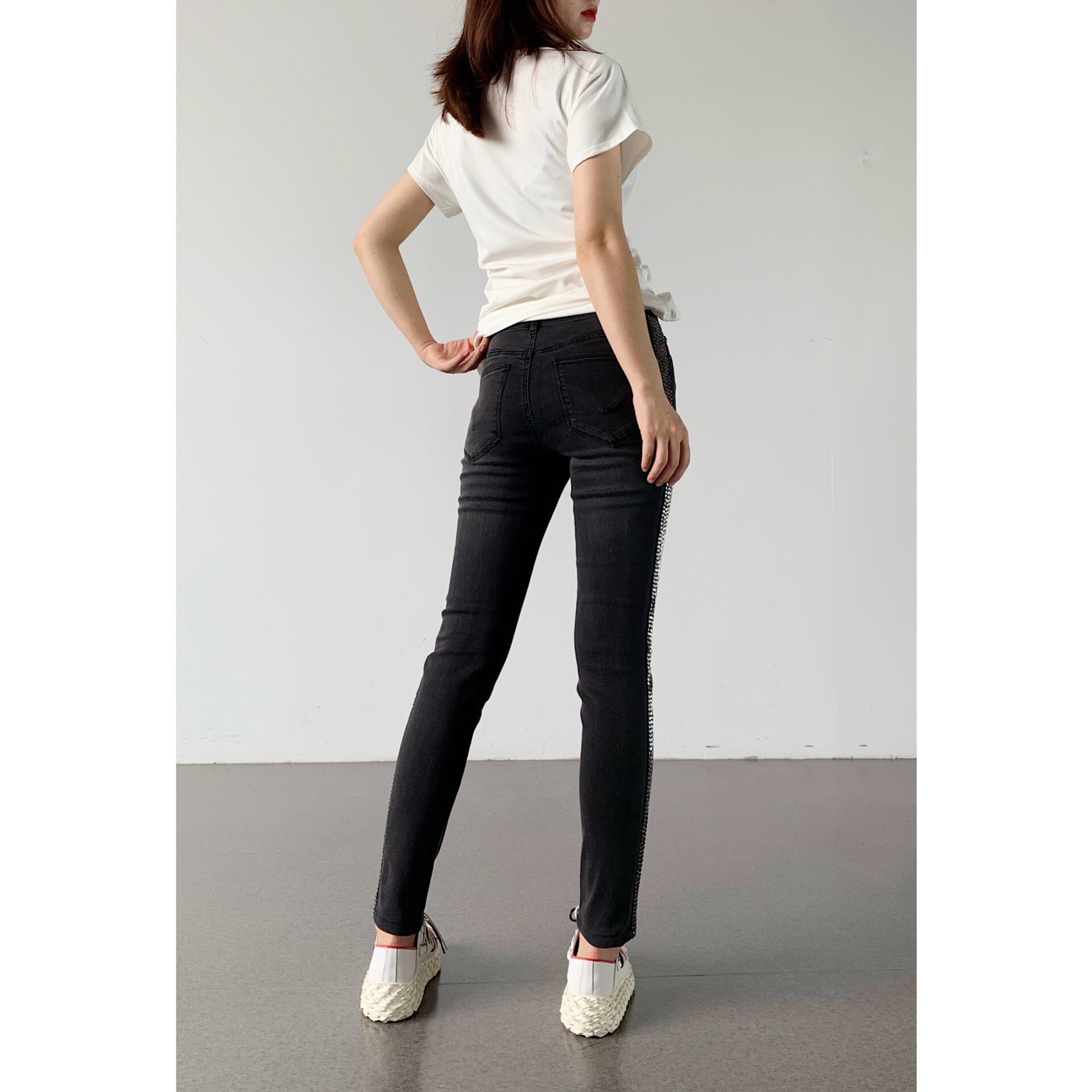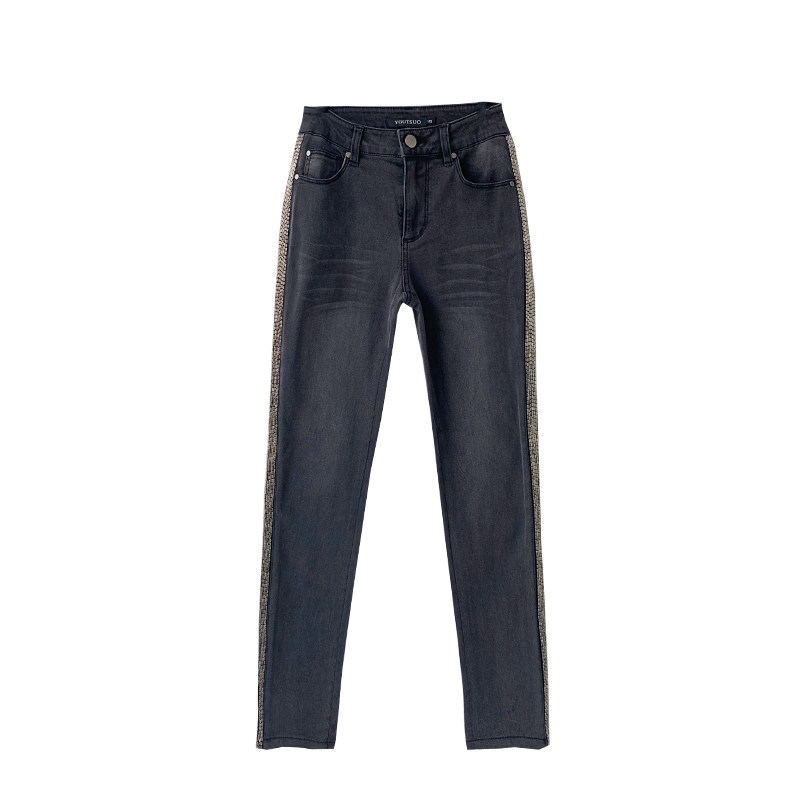 (Rugosa M) Smoke gray high waist hot drill jeans women's straight slim fashion pencil pants slim
