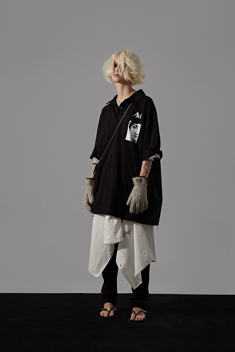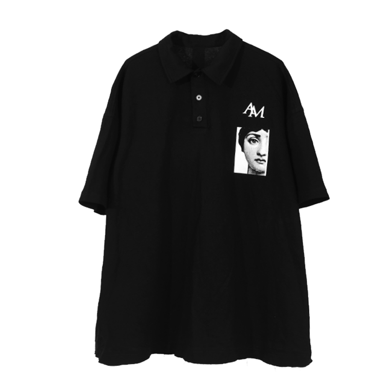 MIICHOUS 20SS empty island printed large profile splicing male and female short sleeve loose POLO shirt oversize